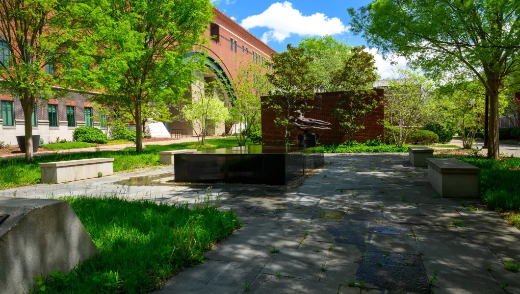 The first full-size casting of August Rodin's "The Thinker" graces the steps of Grawemeyer Hall, UofL's administration building.